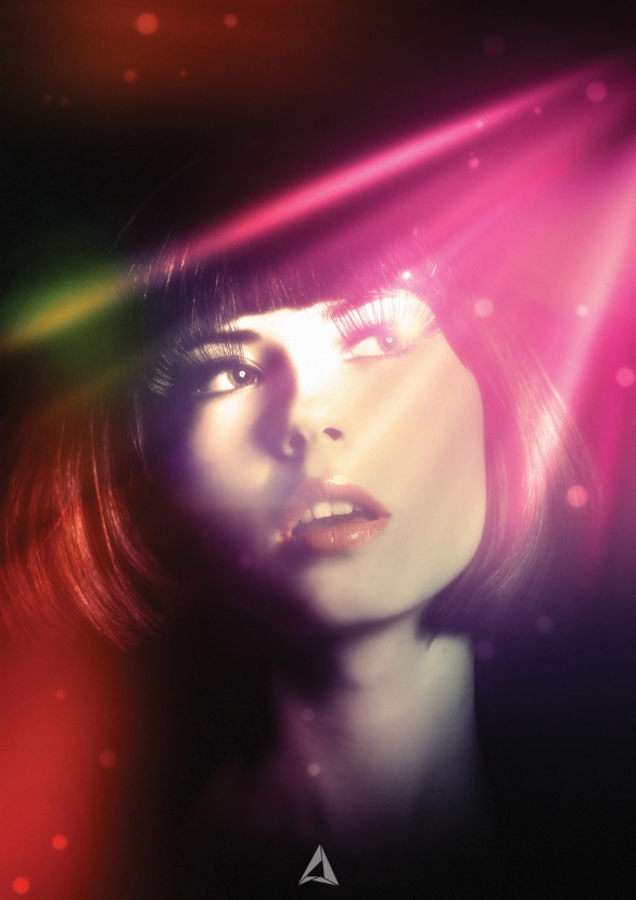 빛의 효과의 다른 이미지를 가져올 시간. 내가 사용하고 있는 분홍색과 파란색 스포트라이트는 Shutterstock에서 가져온 것입니다. 이 이미지를 나머지 위에 있는 'lights3'라는 레이어에 놓고 블렌딩 모드를 소프트 라이트(Soft Light)로 변경합니다. 'bokeh'라고 불리는 또 다른 레이어를 추가하여 검은색으로 채운 다음, 브러시 도구(B)로 둥근 붓을 선택하고 흰색으로 다른 크기의 원 몇 개를 만든다. 아이디어는 단순한 bokeh 스타일의 배경 흐림 효과를 만드는 것입니다. 레이어의 블렌딩 모드를 Color Dodge로 설정하십시오.