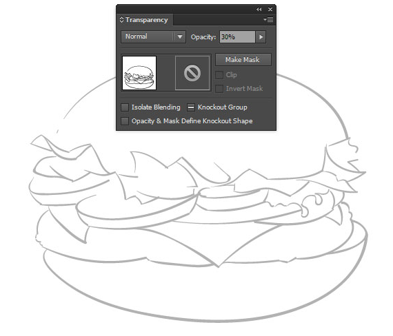 스케치 외곽선의 모든 요소를 그룹화하고 투명도 패널에서 투명도를 줄이고 [레이어] 패널에 잠급니다.