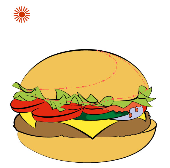 참조 이미지는 또한 색상을 선택하는 데 도움이됩니다. 따라서 기본 만화 스타일의 벡터 버거를 만듭니다.