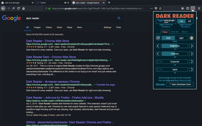 수면에 문제가 있습니까? 뇌가 깨어있는 시간이라고 생각하도록 속이는 지나치게 밝은 웹 사이트를보고 늦게까지 머물렀을 수도 있습니다. Dark Reader 를 설치하여 눈에 약간의 사랑을 나타내십시오 . 그것은 당신이 좋아하는 사이트에 대한 사용자 정의 어두운 모드를 만들 수 있습니다, 밝은 색상을 반전하고 밤에 훨씬 쉽게 읽을 수 있습니다.