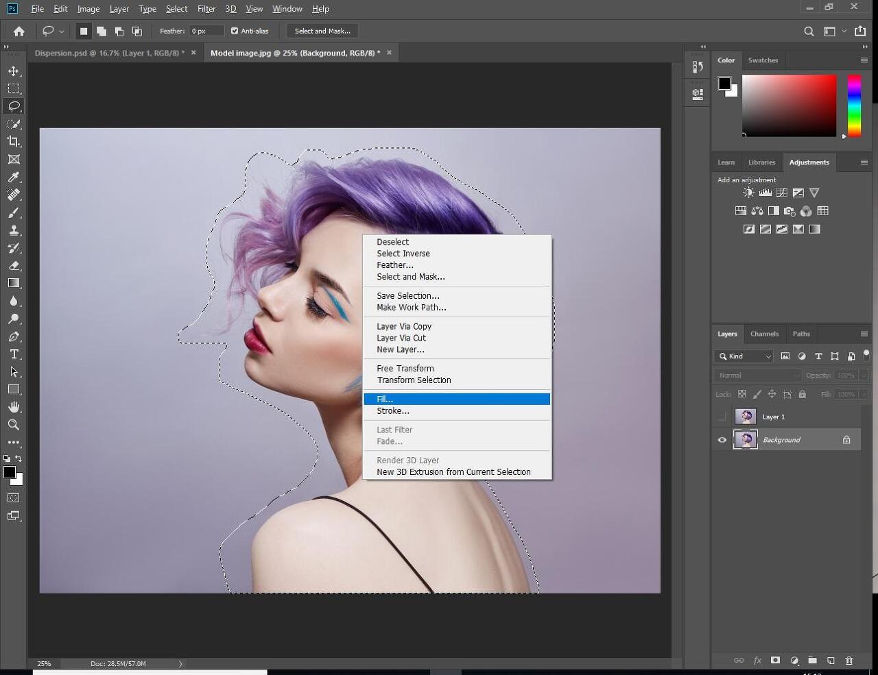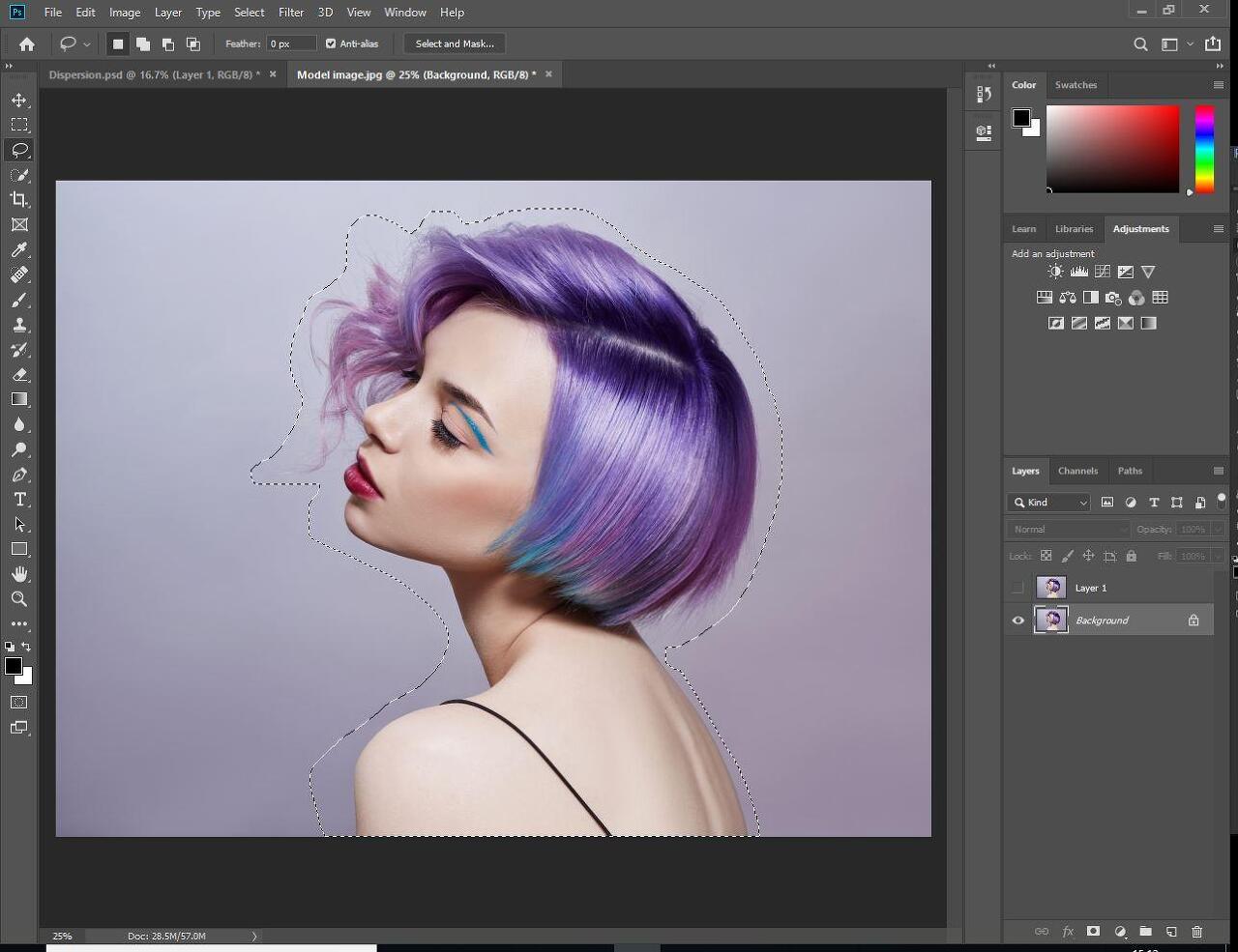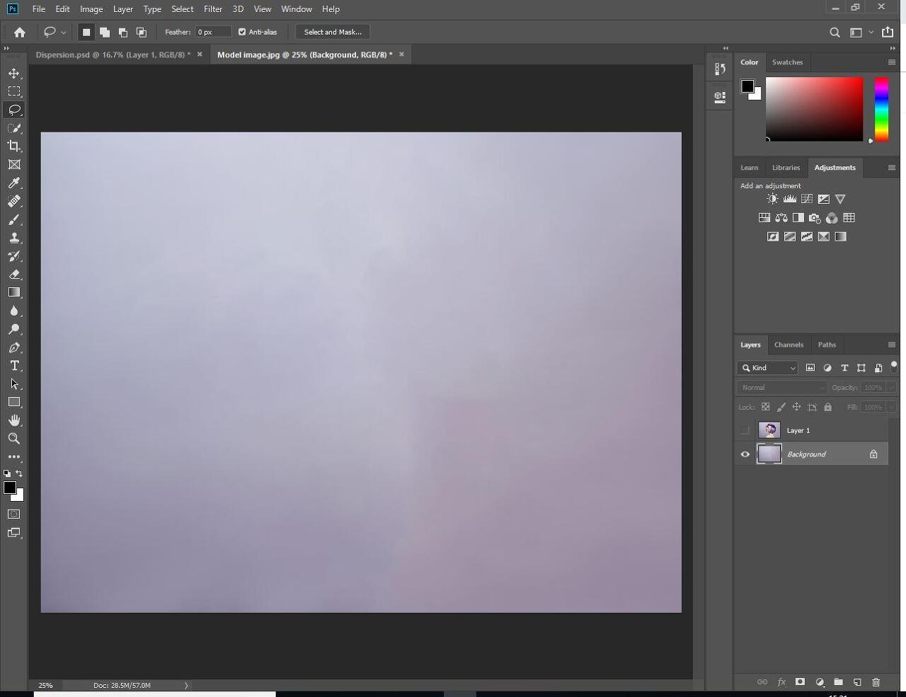 이미지 배경 만 남겨 두어야합니다. 올가미 도구의 선택이 여전히 표시되면 선택 해제하십시오. 상단의 선택 메뉴로 이동하여 선택 취소를 선택하거나 Mac에서 단축키 Ctrl + D 또는 Command + D를 사용하면됩니다.