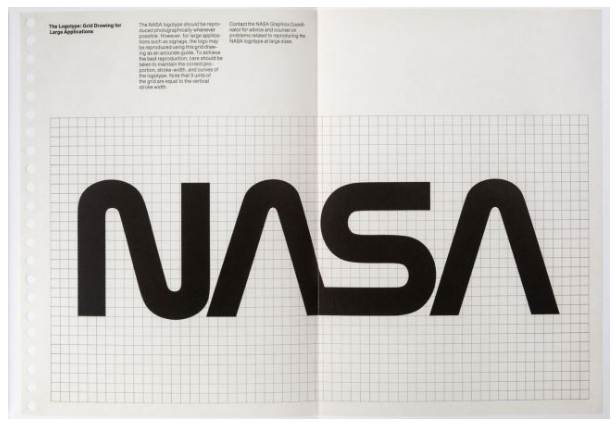 NASA (National Aeronautics and Space Administration)의 그래픽 표준 매뉴얼은 NASA가 원래의 문장 기반 로고에서 이제 매우 친숙한 '웜'로고로 변경되었을 때 1974 년 Danne & Blackburn에 의해 작성되었습니다.