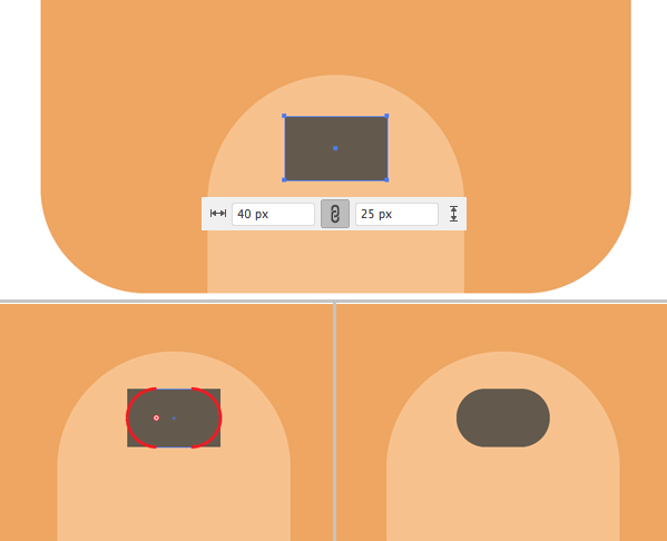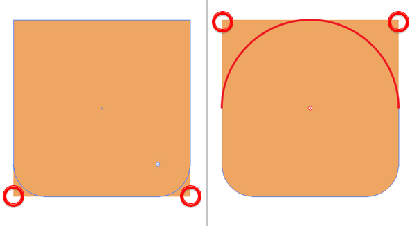 직접 선택 도구 (A) 를 사용하여 상단 포인트를 선택 하고 모서리를 완전히 둥글게 만듭니다.
