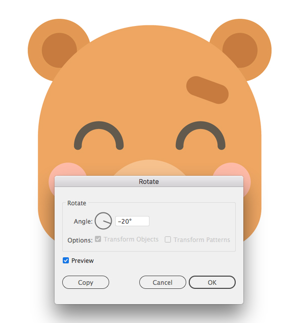 이마를 선택한 상태 에서 회전 도구 (R)를 두 번 클릭 하고 각도 값을 -20 도로 설정하십시오.