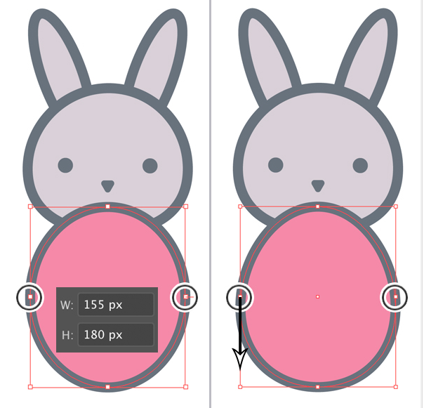 계란의 모양이 올바른지 직접 선택 도구 (A) 를 사용하여 측면 고정 점을 약간 아래로 이동하십시오.
