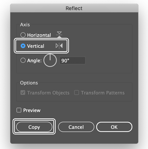 사용을 반영 도구 (O)를 사본을 만들어 다른 측면에 발을 플립.