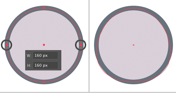 부활절 토끼의 머리부터 시작합시다. 타원 도구 (L)를 가져 와서 Shift 키를 누른 상태 에서 160 x 160 픽셀 원을 만듭니다.