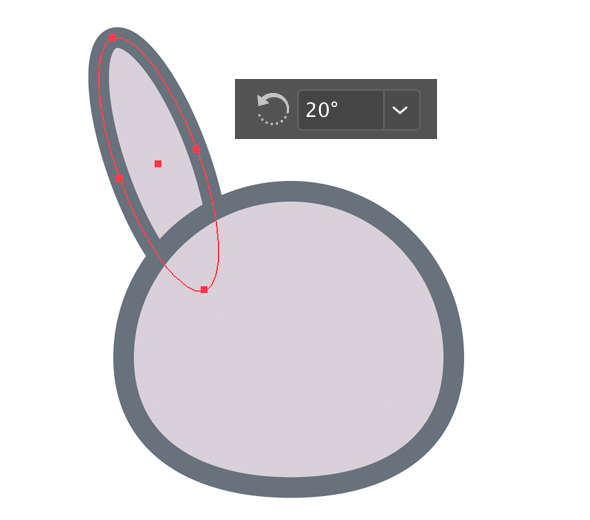 Shift-Control- [ 을 눌러 뒤로 보내기로 귀를 20도 회전 시킨 다음 머리 뒤로 놓습니다.