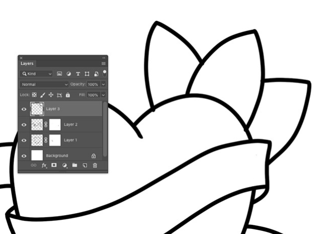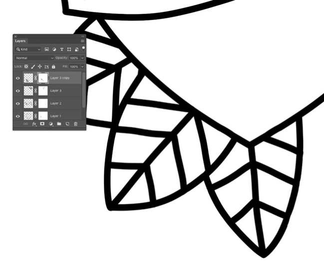 별도의 레이어에 일련의 단순화 된 잎 모양을 그립니다. 레이어 마스크를 사용하여 겹치는 선을 지 웁니다.