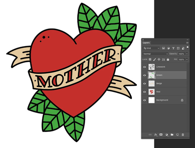 전통적인 문신과 관련된 많은 상징이 있습니다. 사랑하는 사람의 이름을 포함하는 배너와 함께 제공되는 하트와 장미는 종종 선원과 관련된 상징적 인 디자인입니다. 이 튜토리얼에서 만들 디자인은 단순한 문신 모양, 제한된 색상 팔레트 및 오래된 문신 플래시 그래픽 스타일을 모방하는 거친 음영을 사용합니다.