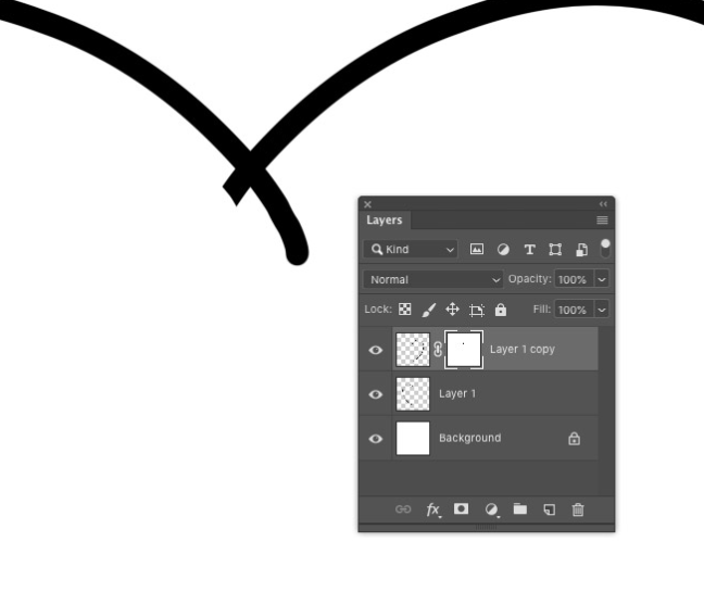 새 선을 제자리로 옮겨 심장 모양을 만듭니다. 레이어 마스크를 추가 한 다음 마스크 내에서 페인트하여 교차하는 선을 지웁니다.