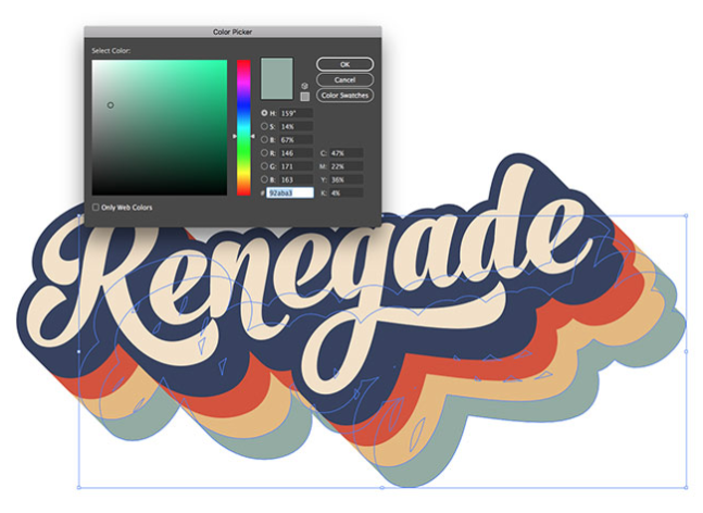 이 튜토리얼에서 우리가 만들 작품은 70 년대 브랜드 로고 스타일의 레트로 타입 디자인으로 시대의 스트라이프 트렌드를 특징으로합니다. 나의 예제는 멋진 전구체 글꼴로 설정된 Renegade라는 단어를 사용합니다. 아트 워크를 완성 하기 위해 워시 앤 워치 텍스처 를 사용하여 클래식 한 티셔츠처럼 보이게합니다.