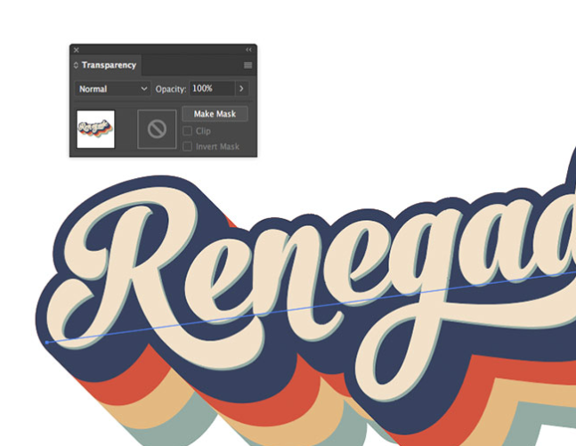 Washed & Worn 텍스처 아트 워크 에서이 텍스트 효과를 모델링 했으므로 이 텍스처 중 하나를 사용할 수도 있습니다. Illustrator에서 텍스처를 적용하려면 투명도 패널에서 마스크 만들기를 클릭합니다 (첫 번째 방법을 사용하는 경우 모든 객체를 그룹화).