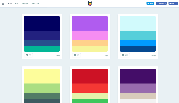 누구나 배색 컬러 팔레트를 게시 할 수있는 사이트에서 인기순이나 무작위로 아름다운 색상을 선택할 수 있습니다.