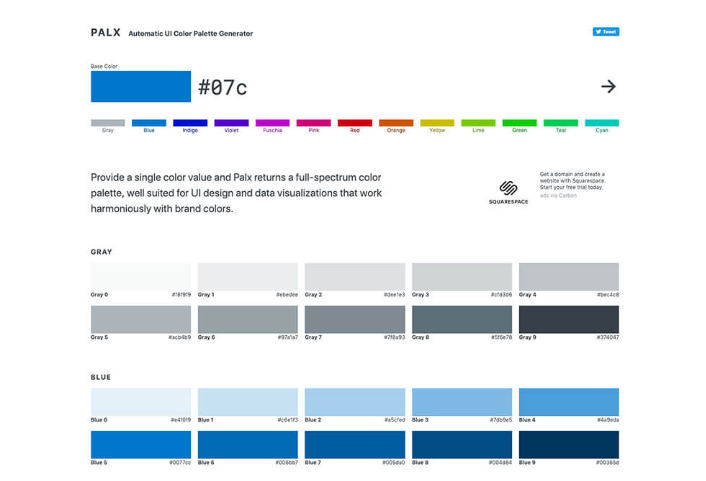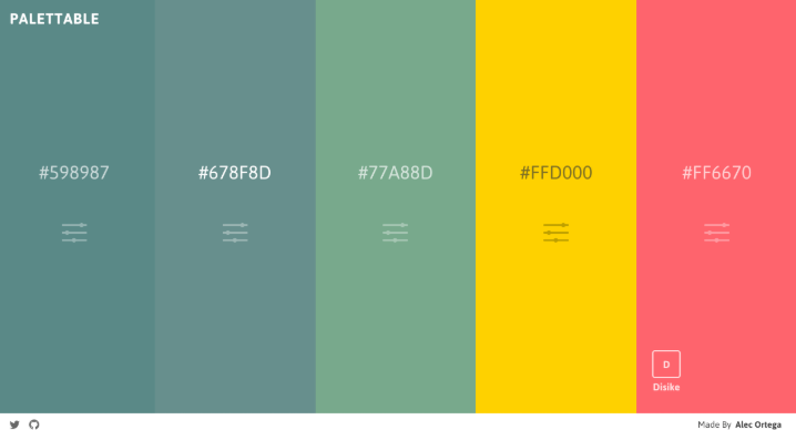 베이스가되는 컬러를 지정하기 만하면 색상 팔레트를 생성 해주는 배색 컬러 도구. 생성되는 지정한 색상과 조화를 이루는 전체 스펙트럼 배색은 CSS와 JSON, Sass 등에서도 사용할 수 있습니다.