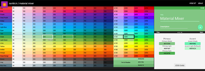 Google의 매테 리얼 디자인 색상을 기반으로 UI 디자인 등에서 사용하기 쉬운 비슷한 색상의 제안을 자동으로 수행 해주는 도구입니다.