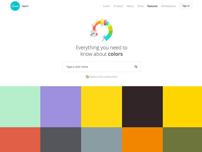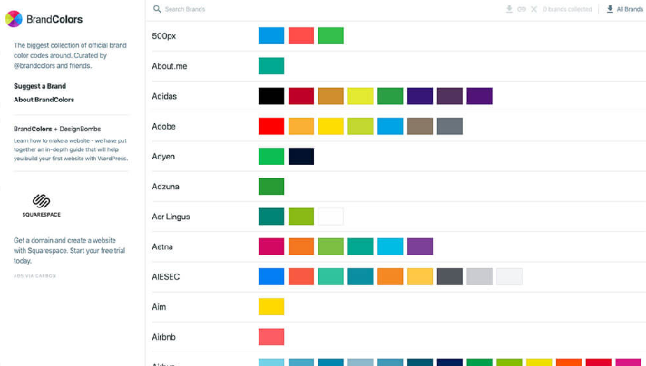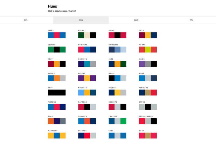 페이지를 스크롤하면 아이디어가 솟아 것 같은 영감 계 배색 도구를 모으고 있습니다. 역사에 얽힌 색상과 해외의 대기업 시작에 사용되는 브랜드 컬러를 모아 놓은 것, NBA와 MLB 등의 팀 컬러를 나열하는 목록 재미있는 이름의 색상 등 모두 독특한 것뿐입니다.
