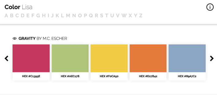 세계에서 가장 위대한 화가가 그린 작품을 모티브로 배색 컬러 팔레트를 정리 한 사이트. 피카소와 다빈치, 에셔, 모네 등 일본에서도 잘 알려진 작가의 작품도 다수수록되어 있습니다.