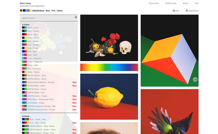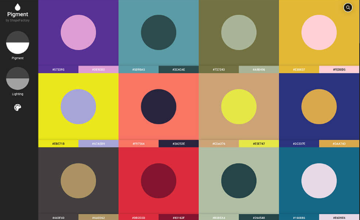 Pigment (안료)과 Lighting (광량)을 조정하고, 사용하기 쉬운 자연스러운 배색 컬러 패턴을 찾을 수있는 온라인 툴. 오른쪽 상단의 검색 창에서 사진을 기반으로 색상을 찾을 수도, DPT 종이 디자인도 편리합니다.