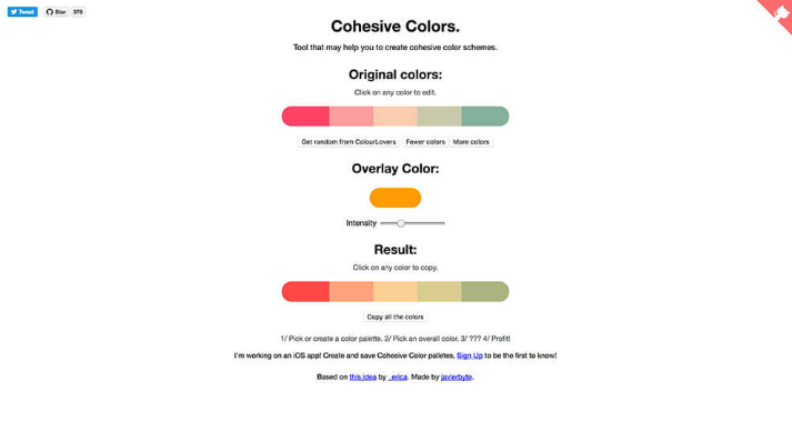 일관성있는 배색 컬러 팔레트를 버튼 클릭만으로 생성 할 수있는 도구입니다. 색상 수를 증감 시키거나, 특정 색상을 오버레이로 거듭 등 간단하고 효과적인 도구.