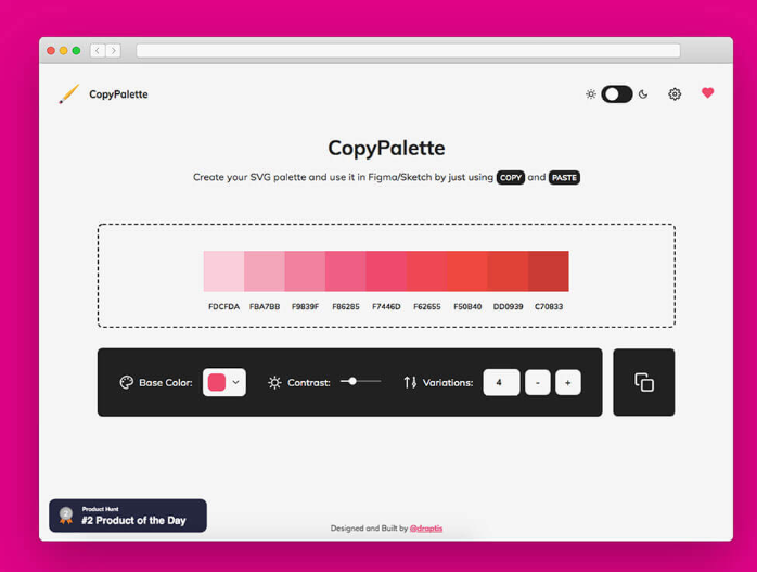 FIgma와 Sketch에서 사용할 수있는 SVG의 배색 컬러 팔레트를 만들고 코피 사용할 수있는 온라인 도구입니다.