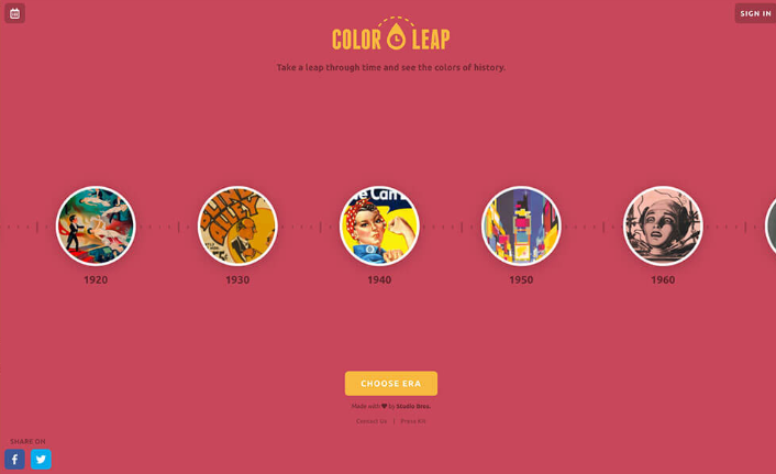 한 번 본 적이있는 유명한 그림이나 포스터 클레오 파트라 관 등 역사적인 미술품에 사용 된 색상을 모아 연대마다 타임 라인에서 확인할 수있는 프로젝트. 수록되어있는 색상 수는 많지 않지만, 「로망을 느낀다 "사이트가 있습니다.