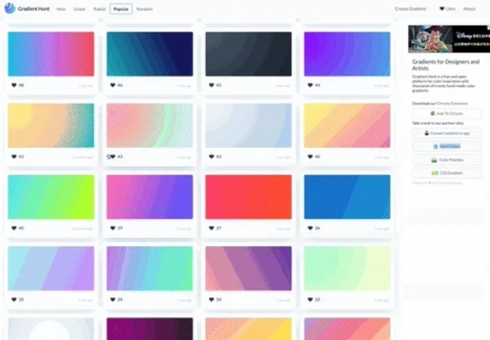 그라데이션 관련 배색 도구는 수도 많기 때문에 많은 기사에서도 정리하여 소개하고 있습니다.