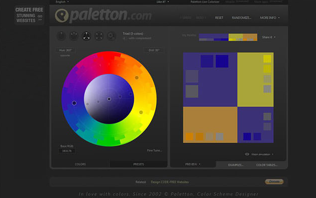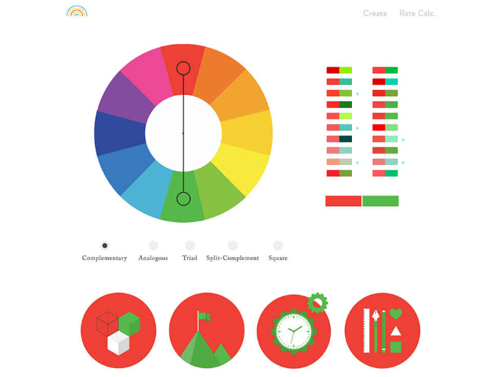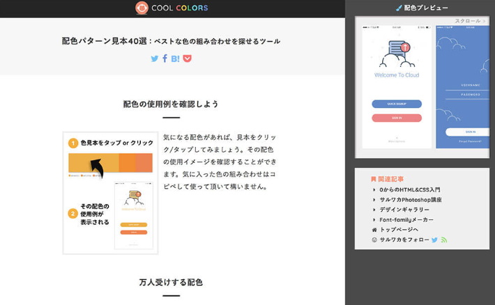 보색과 비슷한 색, 3 색 배색 등 웹과 그래픽에 활용할 수있는 효과적인 색 구성표를 만들 수있는 도구입니다. 그라데이션이나 아이콘 일러스트 등으로 색상을 확인할 수있는 점도 포인트.