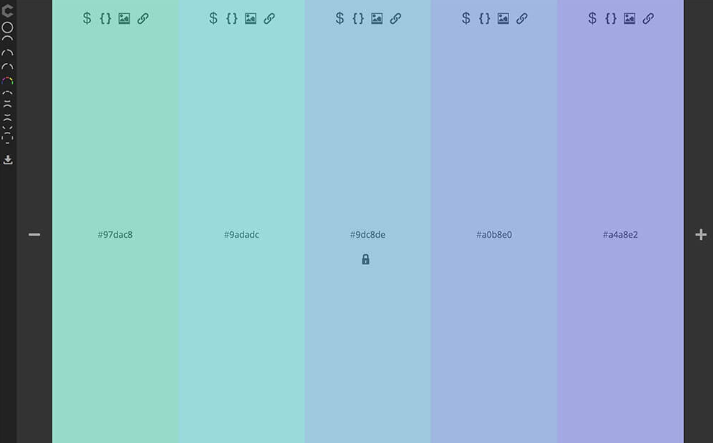 키보드의 스페이스 키를 누를 때마다 스타 리쉬 한 5 가지 색상 팔레트를 자동 생성 해주는 손쉽게 도구. 생성 된 색상은 개별적으로 조정할 수 있습니다.