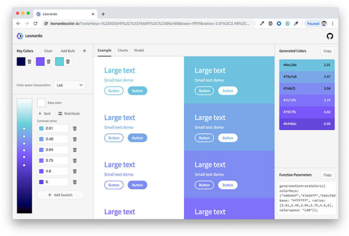 명암비를 기반으로 한 오픈 소스 배색 자동 생성 툴. 아름답고 접근하기 쉬운 컬러 시스템을 쉽게. 자세한 사용법은 이 문서 에서 부디.