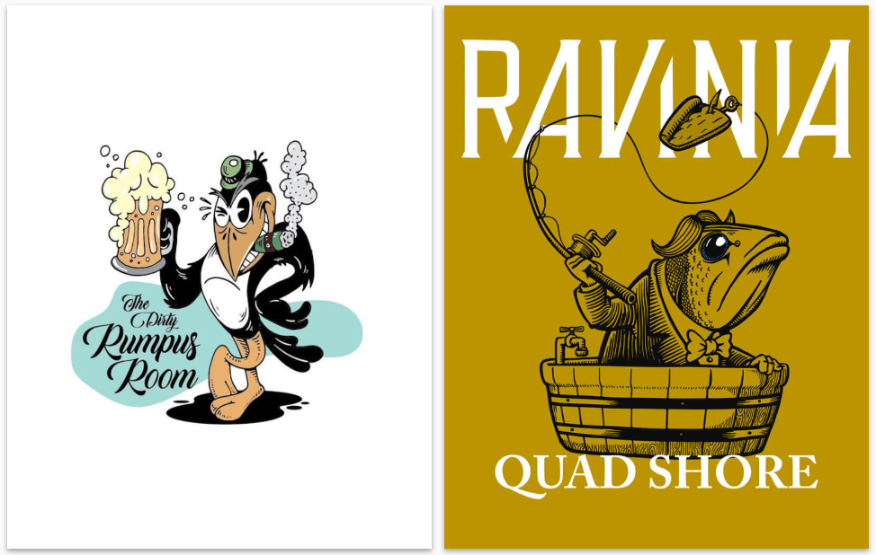 문자를 뒤집거나 미러링 하는 등 다양한 스타일을 시도할 수 있을 것이다. 위 예제 예제처럼 로고를 그대로 읽지 않도록 문자를 아로하 거나 물고기의 비늘과 눈의 발자국 등 다른 뭔가 닮은 글꼴을 사용하는 것이 좋습니다. 펑키 로고 디자인을 만드는 '올바른'방법은 없지만 가독성만큼은 제대로 확보합시다.