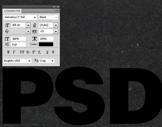 먼저 미리 다운로드 해 놓은 배경에 질감 Background.png를 엽니다. 도구 상자에서 "문자 도구 (T)"를 선택하고 원하는 텍스트를 입력하세요. 이번에는 글꼴 크기 425px로 문자 사이를 조정 해 둡시다.