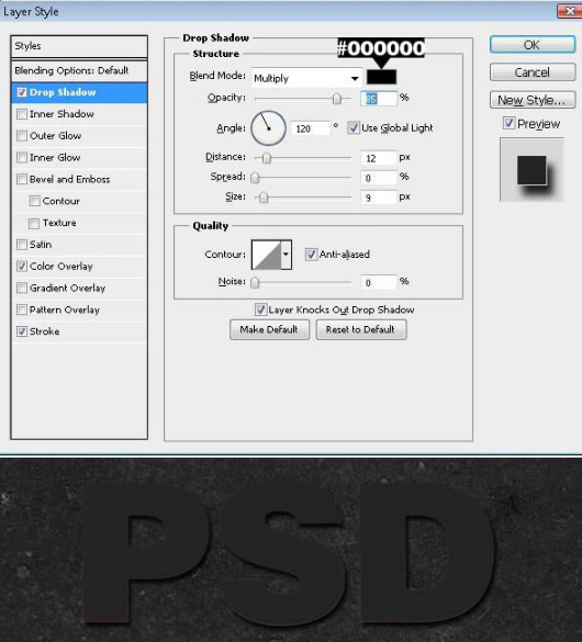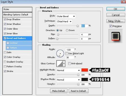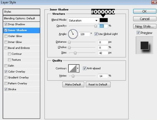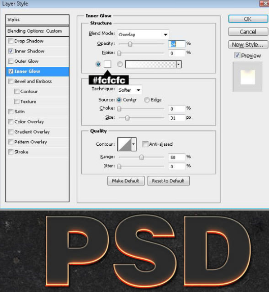 메인 메뉴에서 '레이어'> '레이어 스타일 "을 선택하고 다음과 같이 설정합니다.