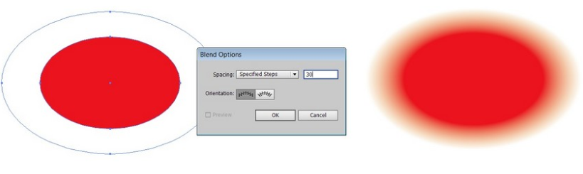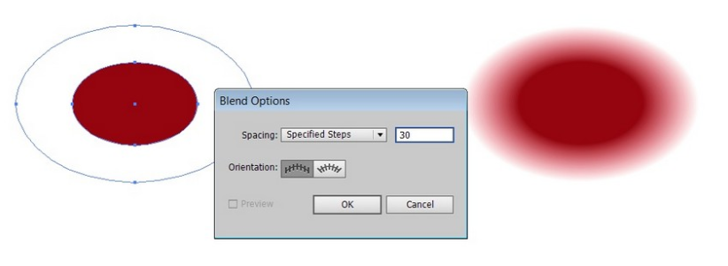 지정된 단계 , 30을 선택 하여 객체> 혼합> 혼합 옵션으로 이동합니다 .