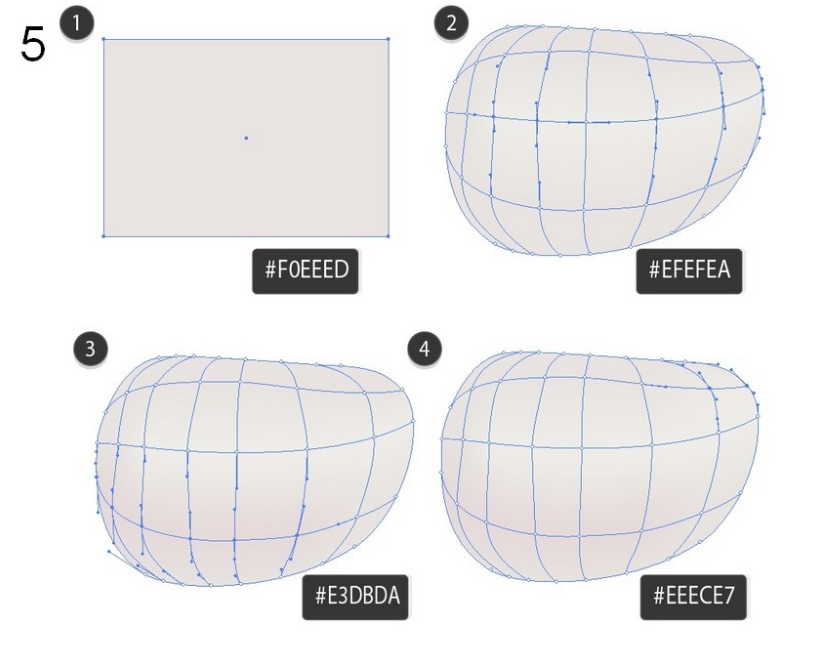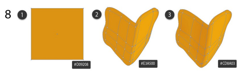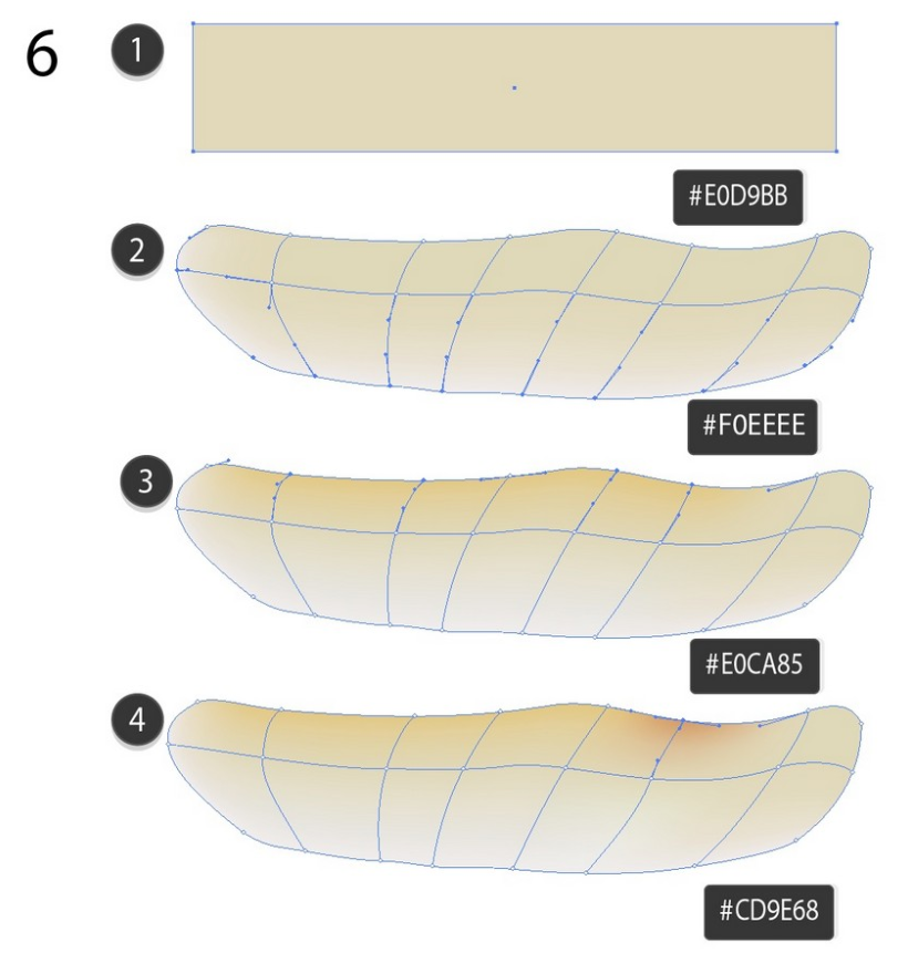 메쉬로 사각형을 구부린 다음 아래 스크린 샷에 표시된대로 색상을 지정하십시오.