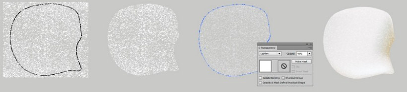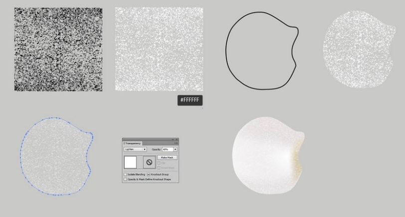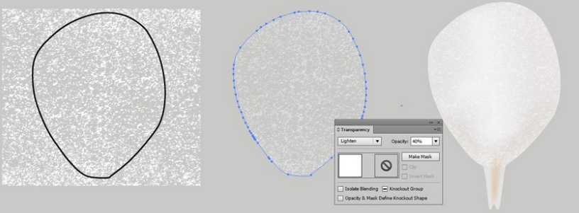 개체 의 불투명도 를 40 %로 변경 하고 밝게 한 다음 메쉬 꽃잎 위에 놓습니다.