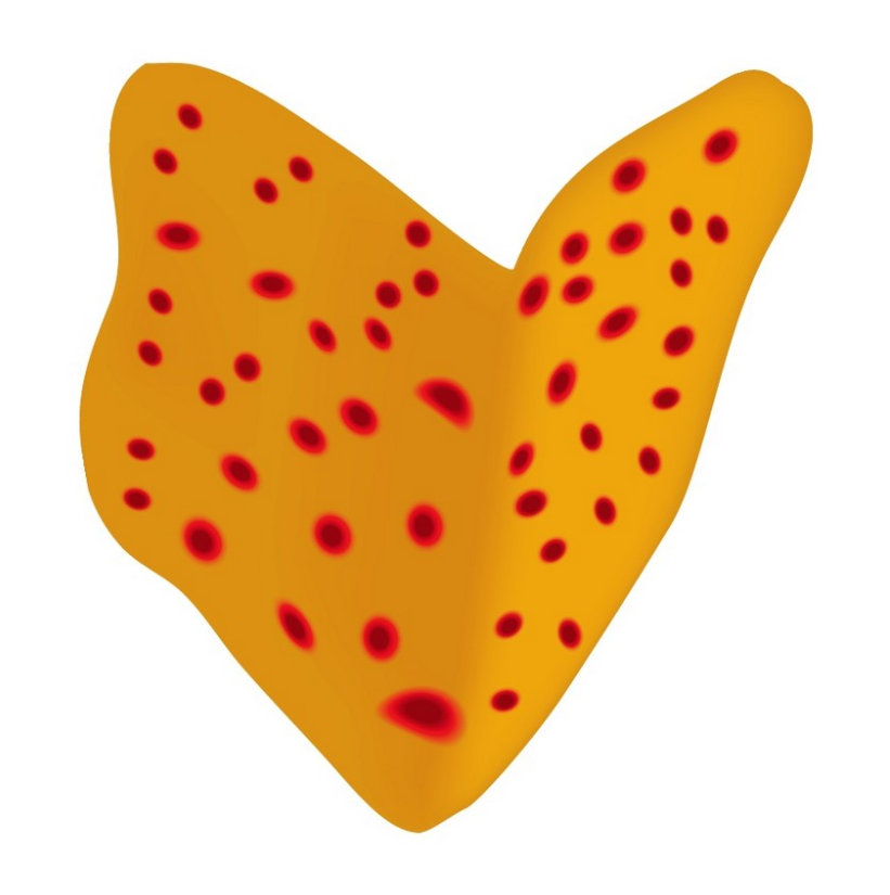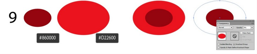 두 개의 빨간 타원 #860000 을 그 #D22600립니다 : 하나 와 두 번째 타원 . 더 큰 타원을 더 큰 타원에 넣고 큰 타원을 투명하게 만듭니다.