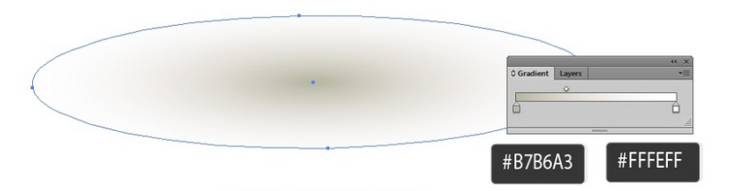 마지막으로 이미지의 그림자를 그립니다. 방사형 그라디언트 로 타원을 에서 #B7B6A3까지 채 웁니다#FFFEFF.
