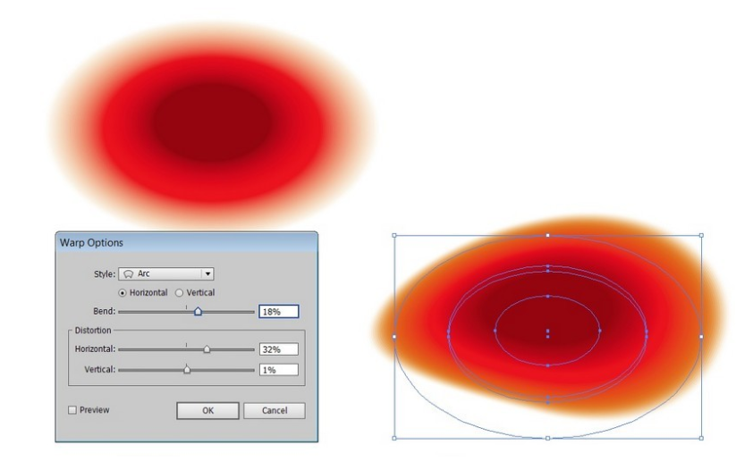 어두운 블렌드 사본 두 개를 더 밝은 블렌드 위에 놓고 효과> 왜곡> 호로 이동합니다 .