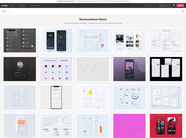 dribbble에는 전세계의 디자이너가 만든 뉴모피즘을 사용한 작품이 계속 업데이트 되고 있습니다.