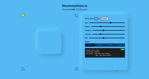 뉴모피즘을 웹 사이트에 도입 할 때 그림자와 슬라이더로 조절할 수 그대로 복사 가능한 코드를 다운로드 할 수있는