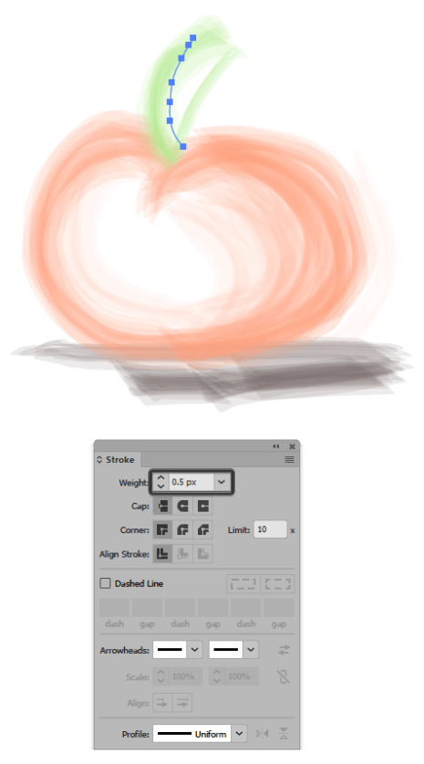 다른 모양과 마찬가지로 스트로크 값을 변경하여 브러시 색상을 쉽게 조정할 수 있습니다 .