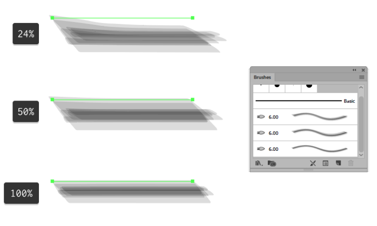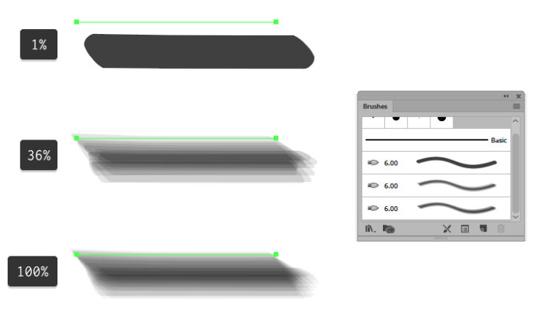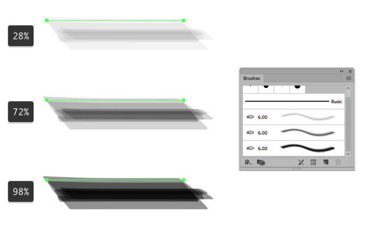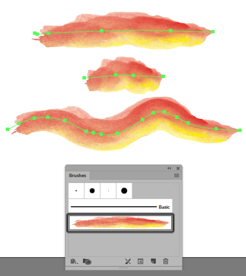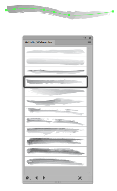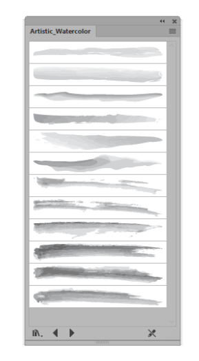 기본적으로 Adobe Illustrator 에는 브러쉬 패널 내에서 액세스 할 수있는 자체 수채화 브러쉬 팩이 제공 됩니다.