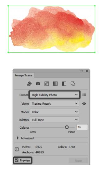위로 열고 이미지 추적 창 ( 창> 이미지 추적을 설정된 후), 그리고 사전 에 하이 피델리티 사진 의 수를 낮출 확인하고, 색상을 스캔 한 브러시 스트로크에 따라 있기 때문에, 그것은 크게 때문에, 컴퓨터의 성능에 영향을 줄 수 있습니다 소프트웨어가 생산하게 될 많은 수의 경로 와 앵커 .