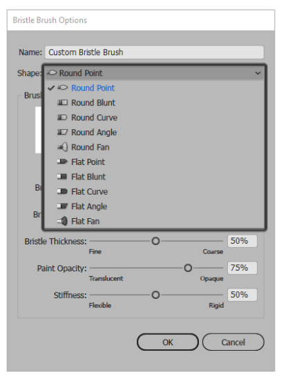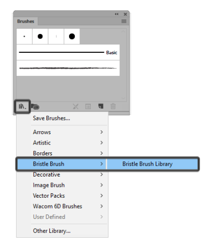8 개의 사전 정의 된 브러시 범주를 제공하는 새로운 드롭 다운 목록이 나타나고 네 번째는 Bristle Brush 입니다.