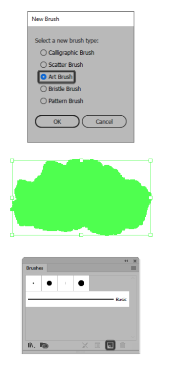 이제 브러시 패널을 열고 새 브러시를 만들어 유형을 아트 브러시 로 설정했는지 확인할 수 있습니다.