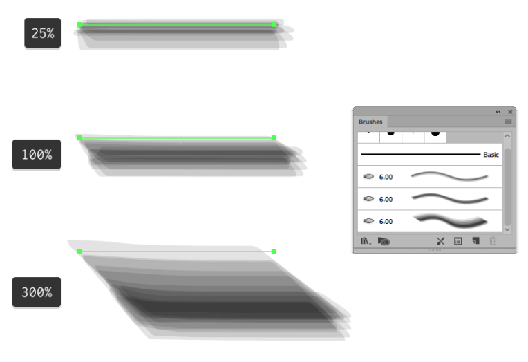 ( 획) 패널을 연 다음 달성하려는 대상에 따라 간단히 브러시 스트로크 를 낮추거나 늘리면 브러시 스트로크의 두께를 조정할 수 있습니다 .