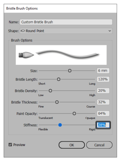 필요한 경우 브러시 패널 에서 브러시를 두 번 클릭 한 다음 실시간 미리보기를 사용하여 원하는 조정을 수행하여 확인을 한 번에 모든 브러시 스트로크를 업데이트 할 수 있습니다 .