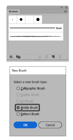 기본적으로 Illustrator 에는 브러시 패널 을 연 다음 브러시 라이브러리 메뉴 를 클릭하여 쉽게 액세스 할 수있는 강모 브러시 세트가 제공됩니다 .