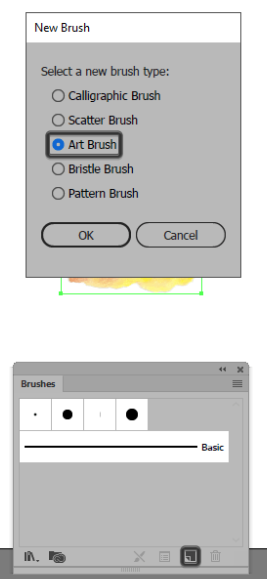 새로운 팝업 창이 즉시 나타나고 생성 할 수있는 5 가지 유형의 브러시 목록이 표시됩니다. 반드시 선택 확인 아트 브러시를 다음 히트 확인을 .